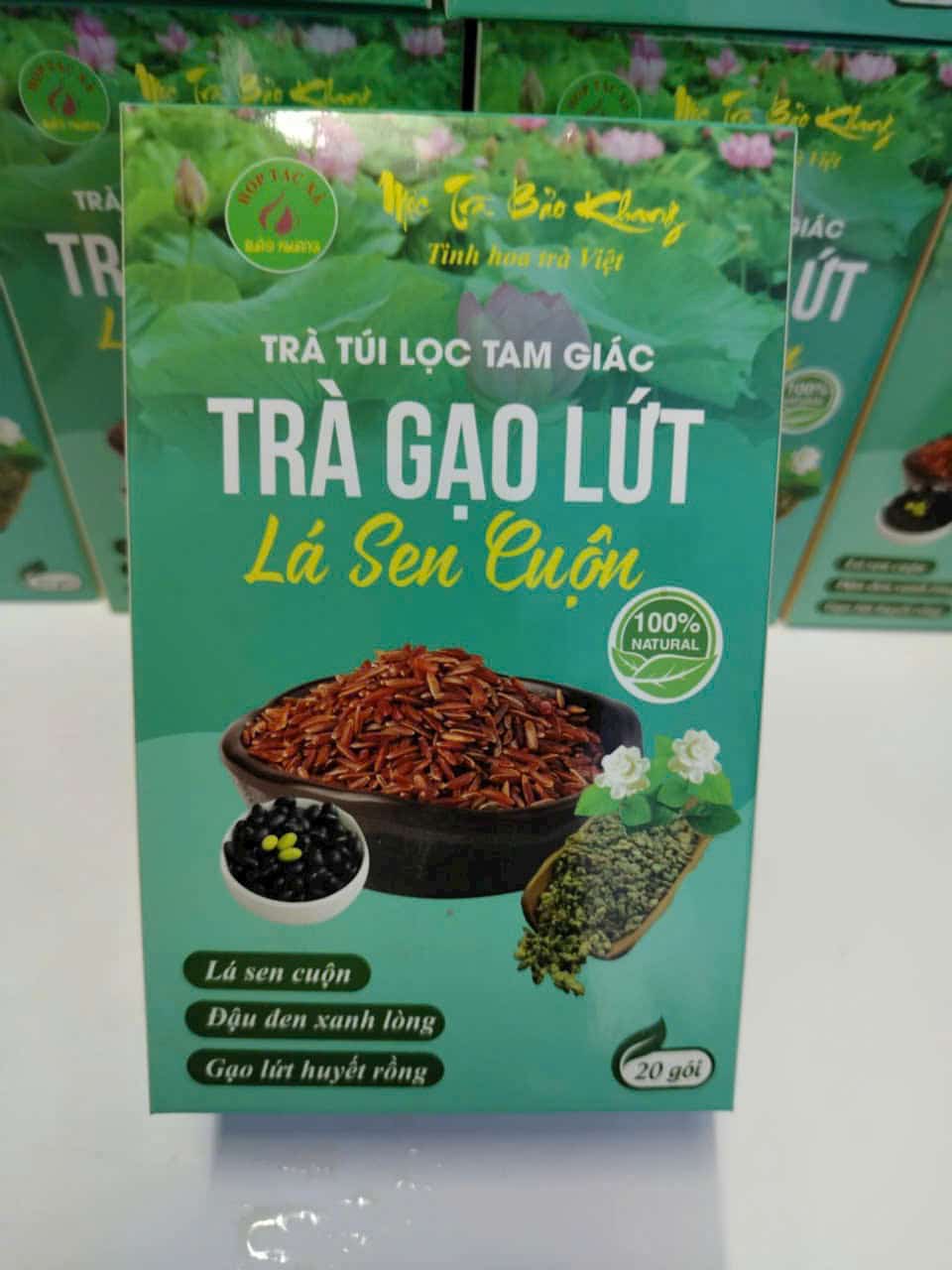 Trà Túi Lọc Gạo Lứt Lá Sen Cuộn Bảo Khang Hộp 20 Túi Lọc