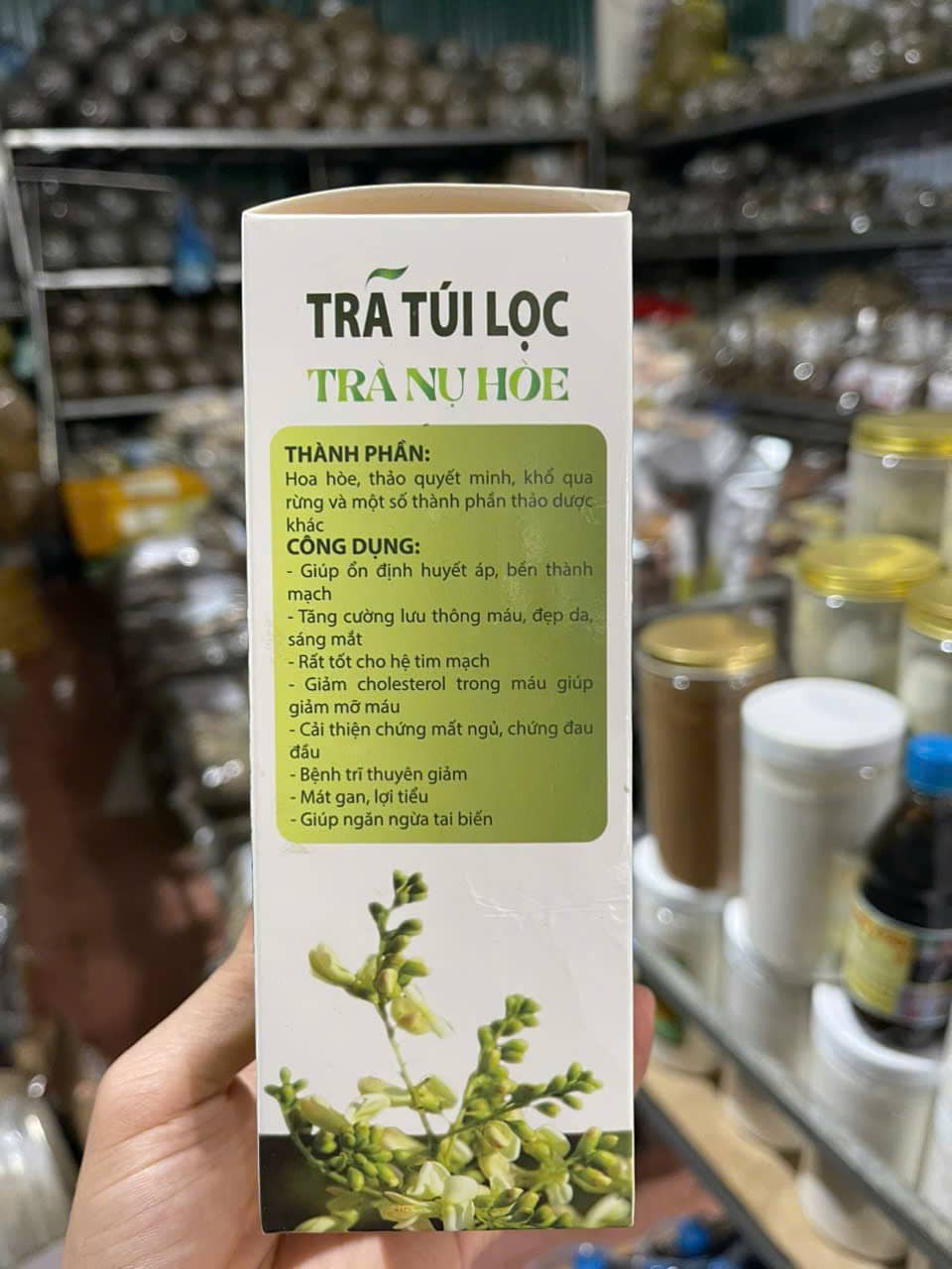 – Thành phần: Nụ hòe, thảo quyết minh, khổ qua rừng và một số thành phần thảo dược khác